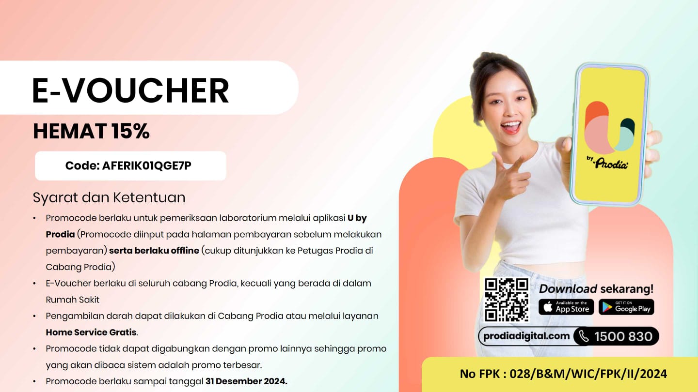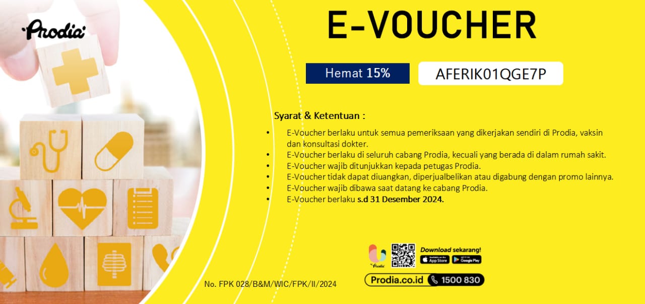 1. Menunjukkan e-voucher ke petugas Prodia sebelum melakukan pembayaran.