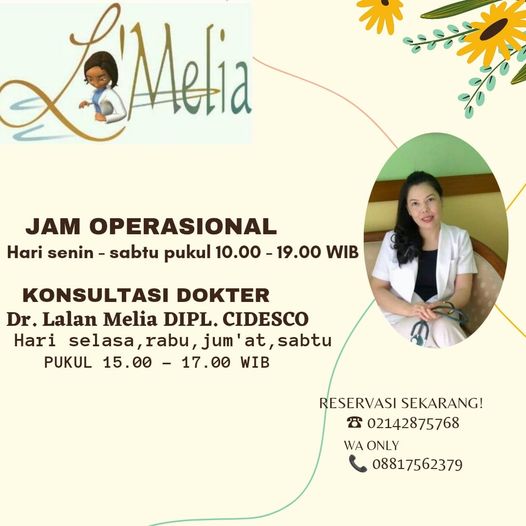 Pandemik membuat semua pihak beradaptasi tidak terkecuali kami di Klinik Kecantikan LMelia. Sebelumnya klien-klien kami bisa langsung memperoleh pelayanan saat berkunjung, sekarang tidak begitu lagi. Guna mencegah kerumunan dan waktu tunggu yang lama, maka sejak Desember 2021, telah diperlakukakan sistem Pendaftaran dan Antrian. Kami mohon maaf atas ketidaknyamanan ini dan mohon pengertiannya. Ini terpaksa kami lakukan demi kesehatan dan kenyamanan kita semua. Reservasi / Pendaftaran bisa dilakukan via: 021-42875768 selama operasional Klinik yaitu dari Senin s/d Sabtu, mulai pkl. 10:00 – 19:00 WIB. Atas pengertian dan kerjasamanya diucapkan banyak terima kasih. Mari kita jaga kecantikan kita dengan cara yang sehat.